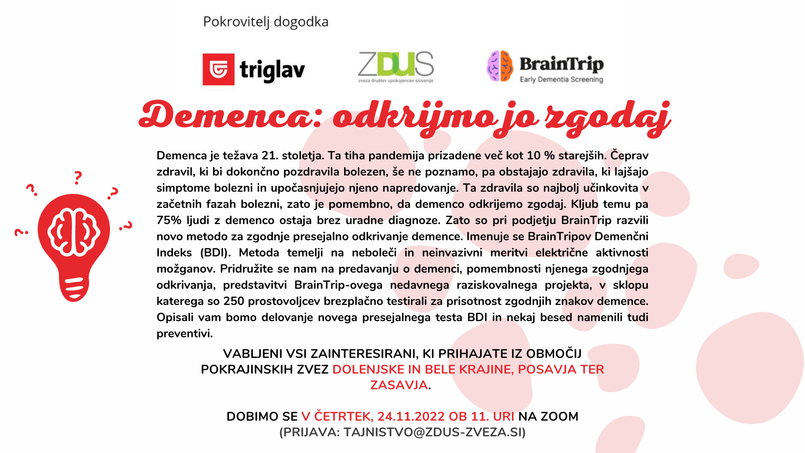 ZOOM delavnica Demenca: odkrijmo jo zgodaj